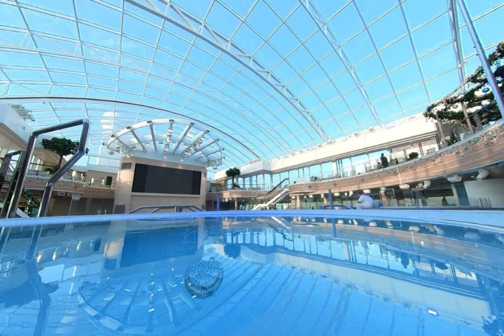 • SkyDome with retractable glass roof – pools by day, shows by night