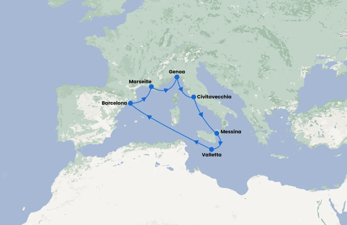 • Messina, Sicily – Taste Sicilian flavours and visit nearby Taormina or Mount Etna.