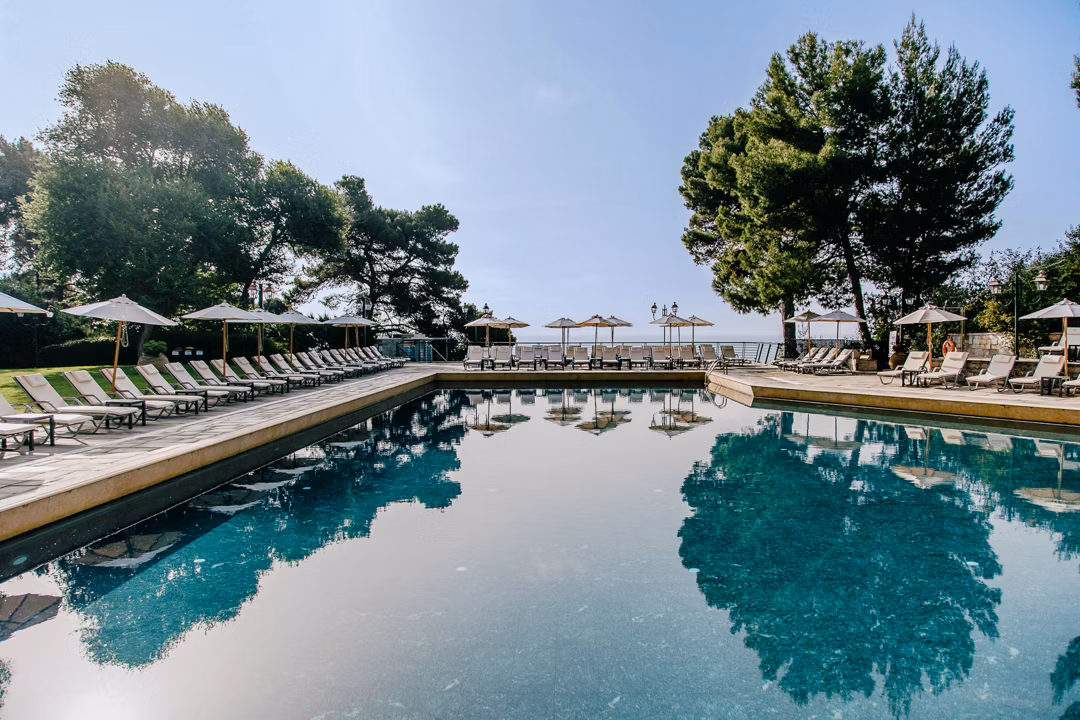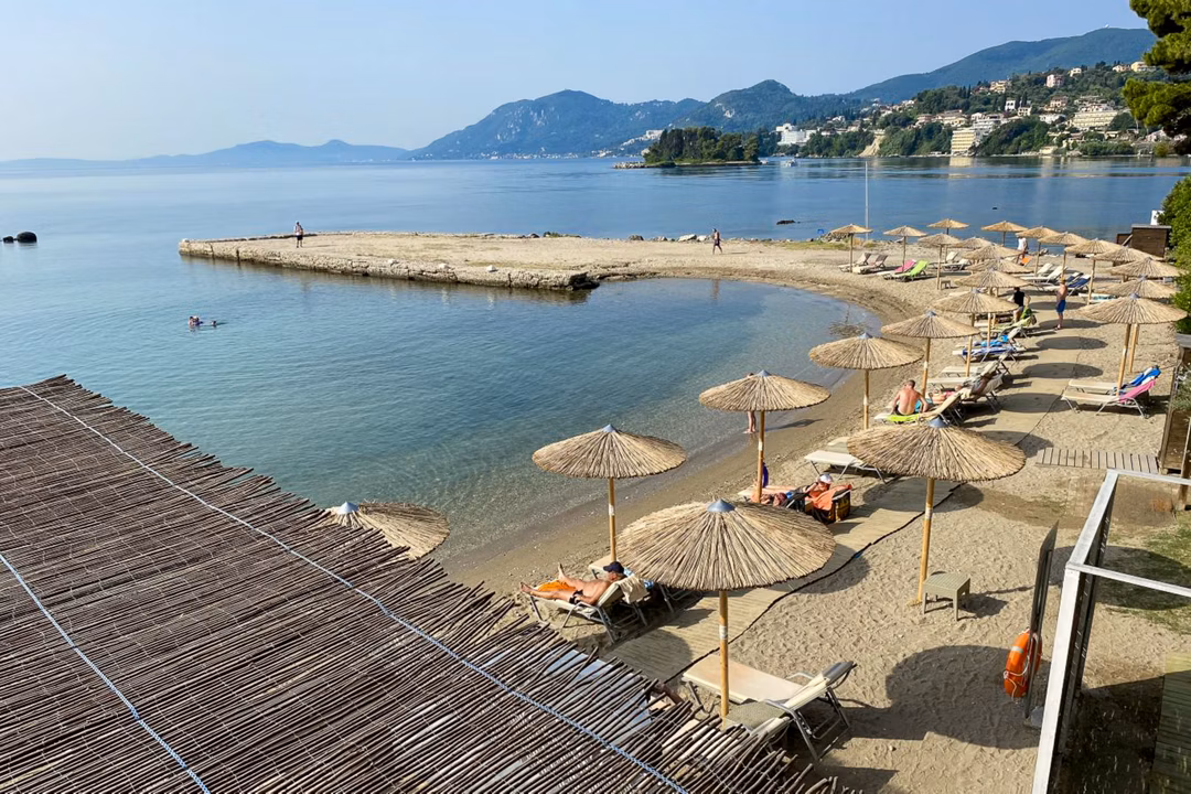 Guests can spend their days relaxing by the pool, enjoying the private beach or taking in the breathtaking sea views from the hotel’s terraces and restaurants. With comfortable rooms, excellent dining options and a great location close to Corfu Town, it’s a fantastic base for a Greek island getaway.