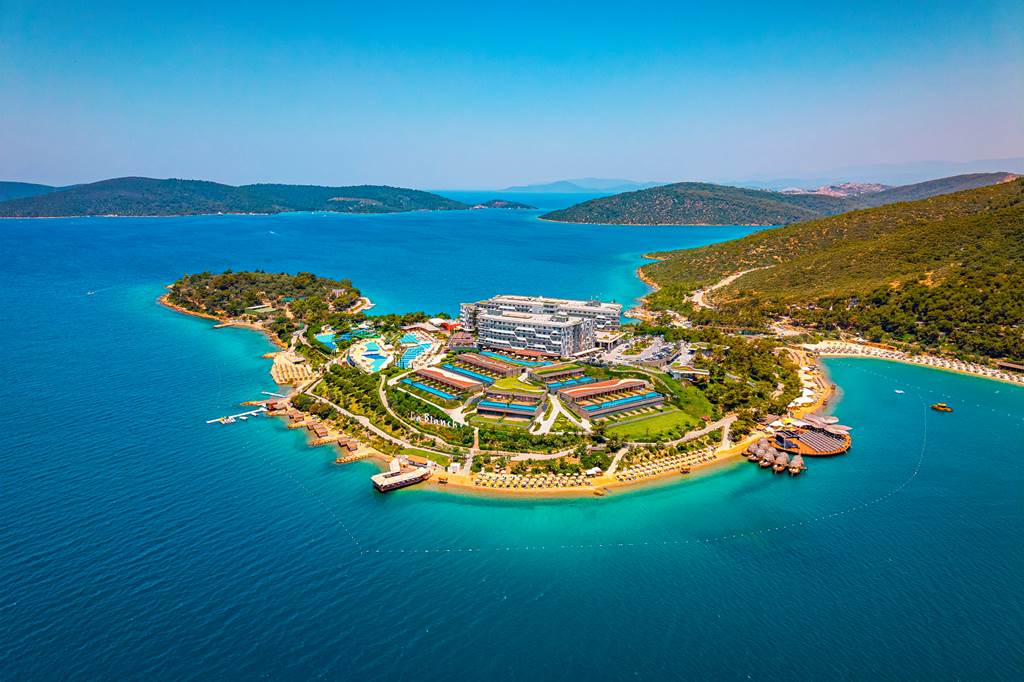 🏨 The La Blanche Island Resort is a breathtaking 5-star all inclusive hotel set on a private peninsula in Guvercinlik, Bodrum. Surrounded by the crystal-clear waters of the Aegean Sea, it offers secluded luxury, stylish rooms, and world-class facilities – perfect for luxury holidays in Turkey.