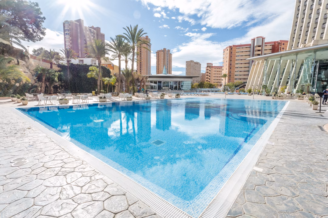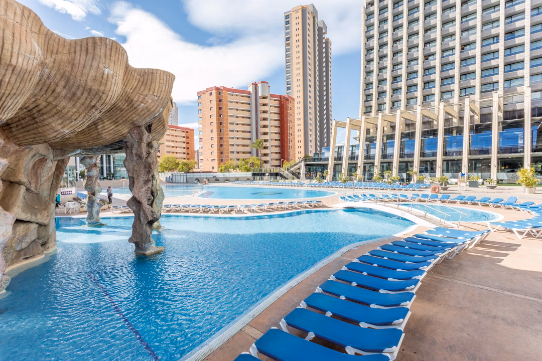 šØ The Gran Bali Hotel is an iconic 4ā hotel in the heart of Benidorm, boasting spectacular panoramic views over the Mediterranean Sea and the surrounding skyline thanks to its impressive height. Located just a short stroll from Levante Beach and Benidormās lively promenade, this resort offers something for everyone ā from huge outdoor swimming pools and thrilling water slides to stylish restaurants, pool bars and sunset terraces. Spacious rooms provide city and sea views, and the hotelās leisure facilities include a full spa and wellness centre, gym, kidsā club and evening entertainment, making it an excellent choice for families, couples and groups seeking fun in the sun on Spainās Costa Blanca.