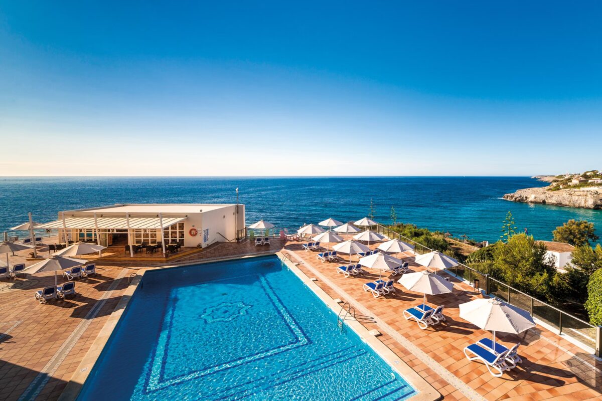 🏨 The Globales América is a popular 4-star all-inclusive hotel set on a scenic clifftop in Calas de Mallorca, overlooking the golden sands of Cala Domingos and the sparkling Mediterranean Sea. Guests can enjoy panoramic sea views from the sun terraces, three outdoor swimming pools, and comfortable air-conditioned rooms — many of which feature private balconies with ocean vistas. Onsite facilities include buffet dining with Mediterranean and international dishes, several bars and snack spots, sports courts, kids’ pool and play areas, as well as entertainment programmes for all ages. Its relaxed beachside location makes it a great choice for both families and couples seeking sunshine, sea and fun in Mallorca.